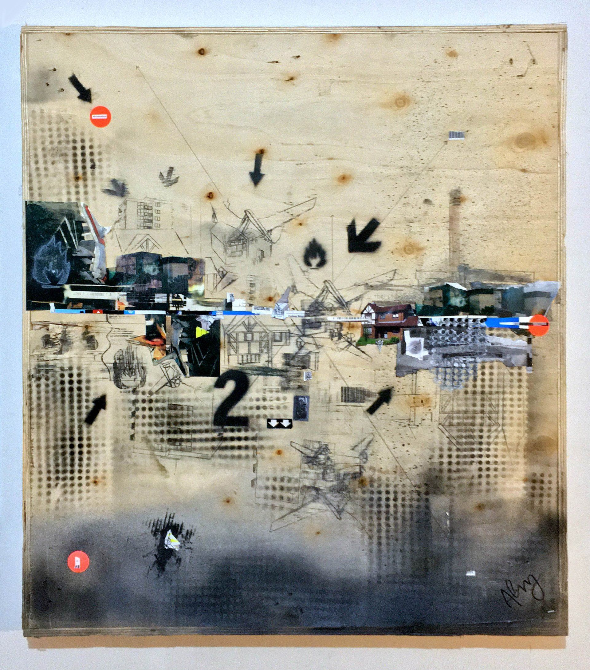 Mixed media collage on board